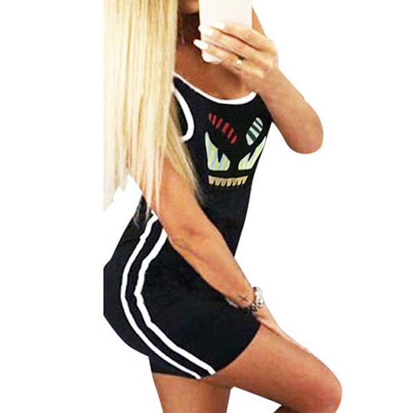 Fashion Sleeveless Round Neck Slim Fit Printed Dress