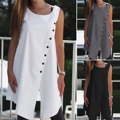 Fashion Sleeveless Round Neck Slim Hem Loose Top