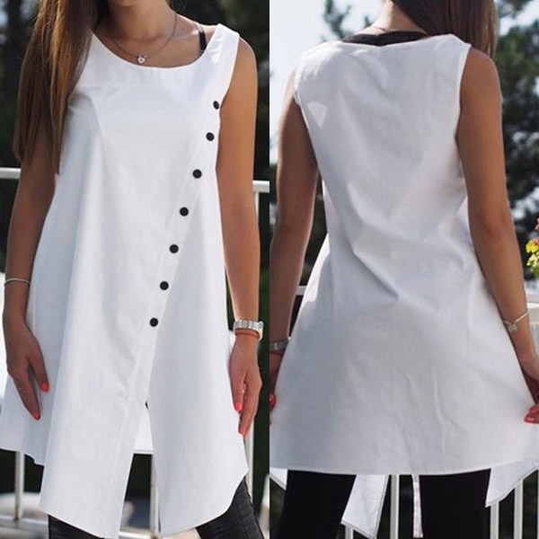 the slit hem design makes this piece look more attractive. Finished with sleeveless,round neck and