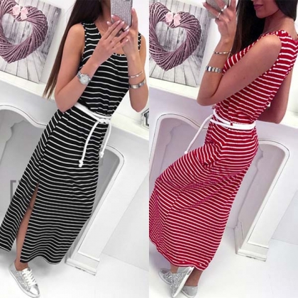 Style and cozy come together so perfectly in this maxi dress! Designed with striped element,stylish