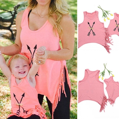 Between the mother and daughter,this parent-child tank top is a cool way to witness their close relationship