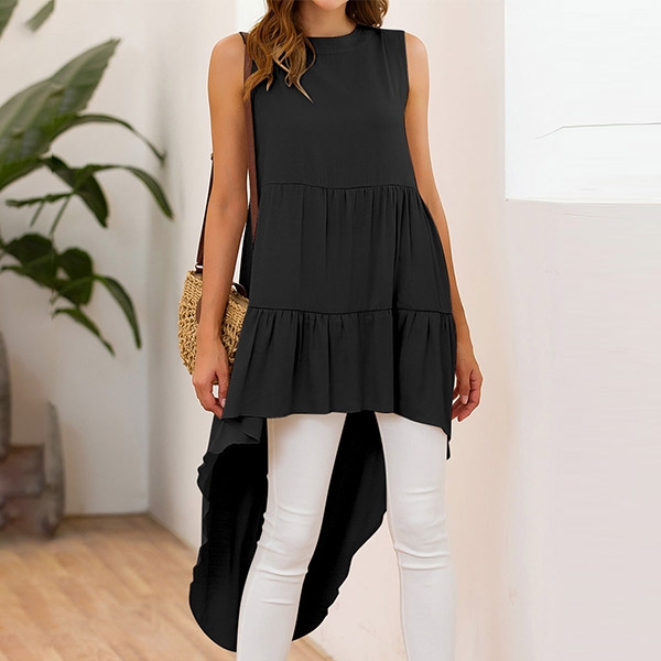 Attracted by this chic and unique top? It comes with a solid color,with sleeveless,round neck and high-low