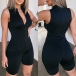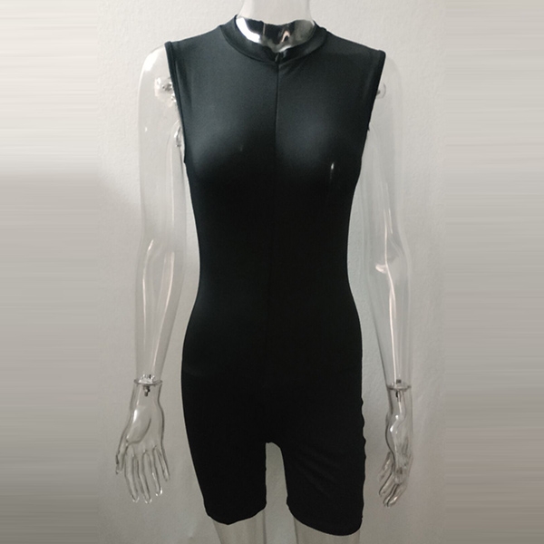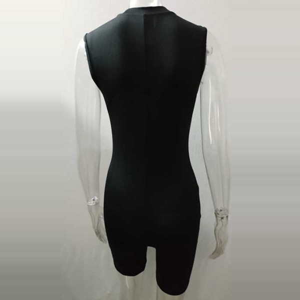 in this romper. Moreover,the zipper design at front side allows this piece to be a deep v-neck style.