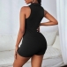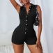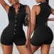 Fashion Sleeveless Square Collar Double-breasted Slim Fit Romper
