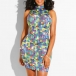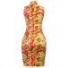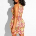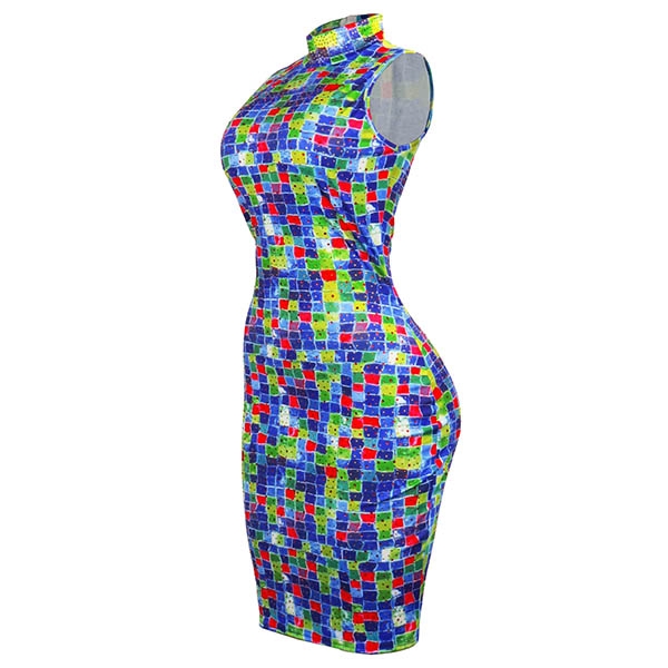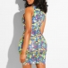 You are bound to be the focus when you wear this amazing dress. The colorful printed and rhinestone