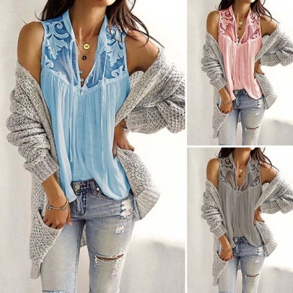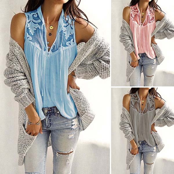with sleeveless,stand collar and lace spliced design,which not only can offer you a comfortable day,but also