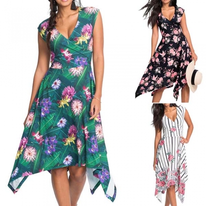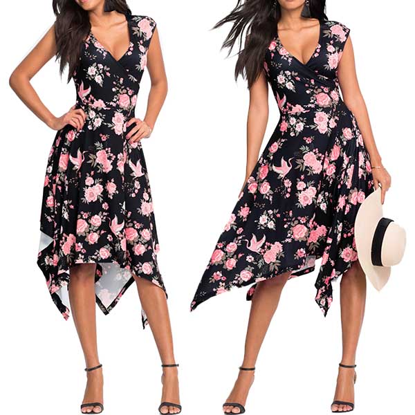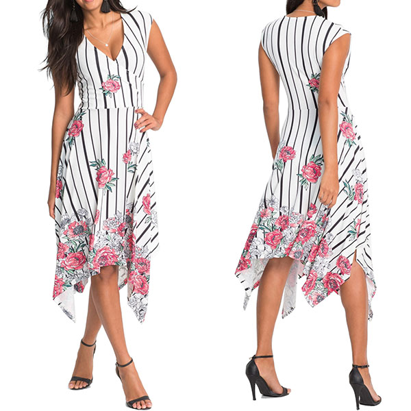 v-neck and an irregular hem,chic and stylish. You can also have a comfortable day in this dress thanks