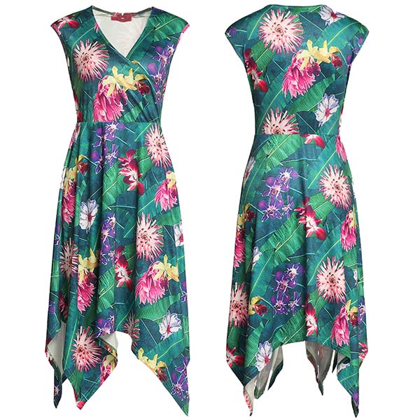Greet the sunny weekends with this delightful dress! Boasts vibrant floral print,finished with sleeveless,