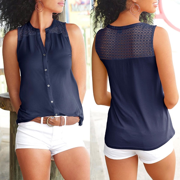 front-button and lace spliced details,cozy yet stylish. No matter matching with your shorts or skirts