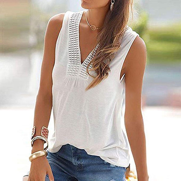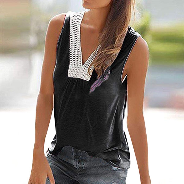 Fashion Sleeveless V-neck Lace Spliced Tank Top