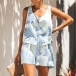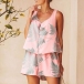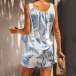 On your lazy days,this two-piece set would be a wise choice. It consists of a sleeveless v-neck printed