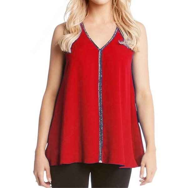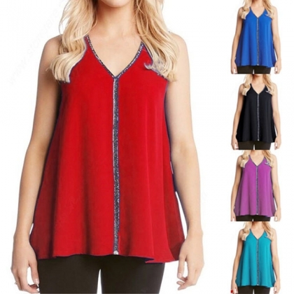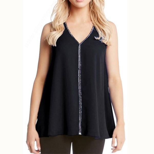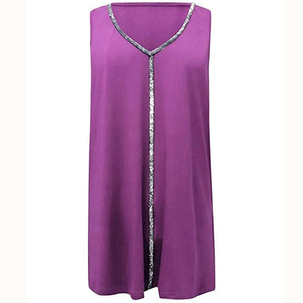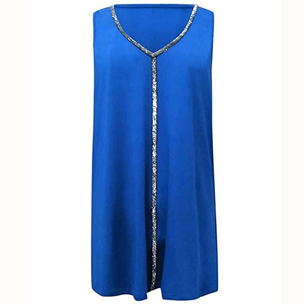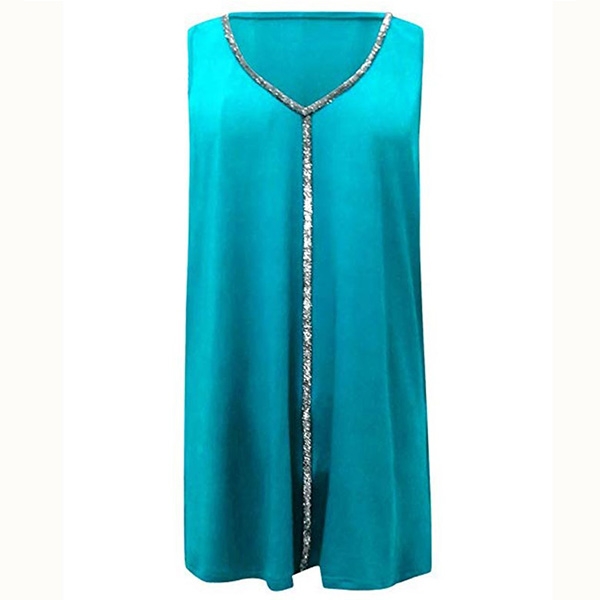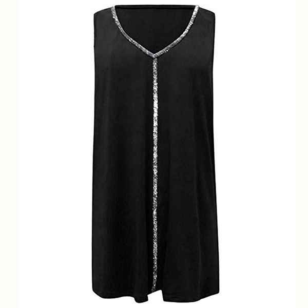 It is finished with sleeveless,v-neck and a loose silhouette,the sequin spliced details enhance its charm.