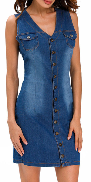 and a sleek fit silhouette,this denim dress can make any girl look effortless charming.