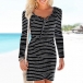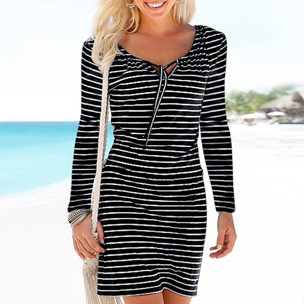 Designed with striped element,accompanied with sleeveless,v-neck and a fit silhouette,this dress can give