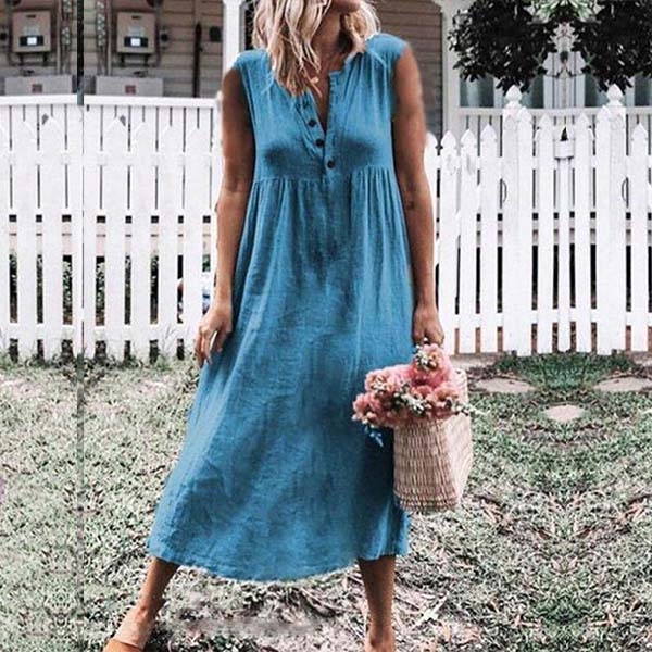 with a solid color,accompanied with sleeveless,v-neck and a loose silhouette,this dress of course