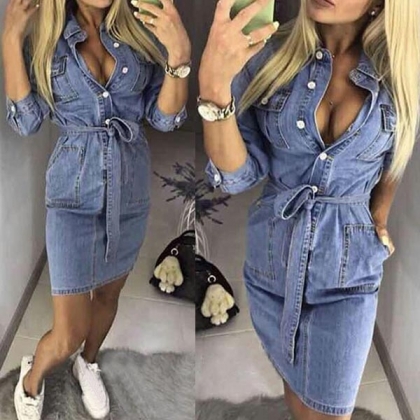 Indulge in a charming look with a cool style of this denim dress! Fabricated in a soft and cozy denim fabric,