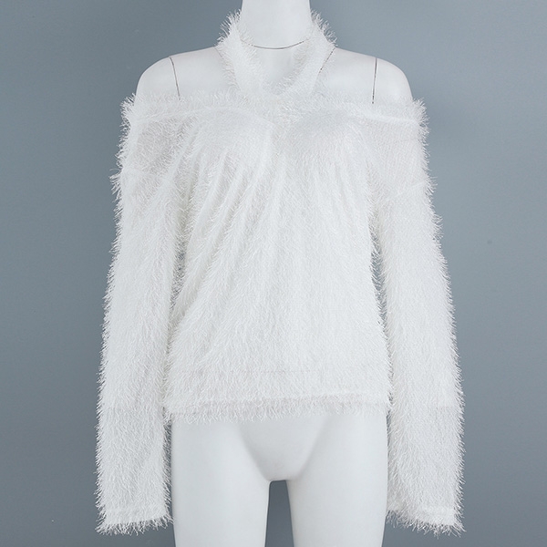The sweater in high quality and soft material woven, with long sleeve, solid color and off-neck,