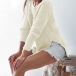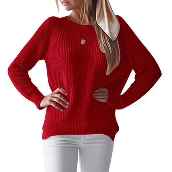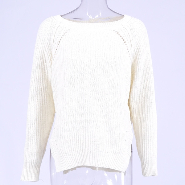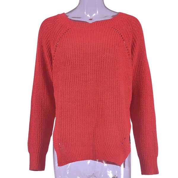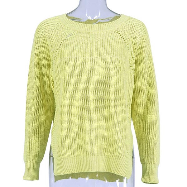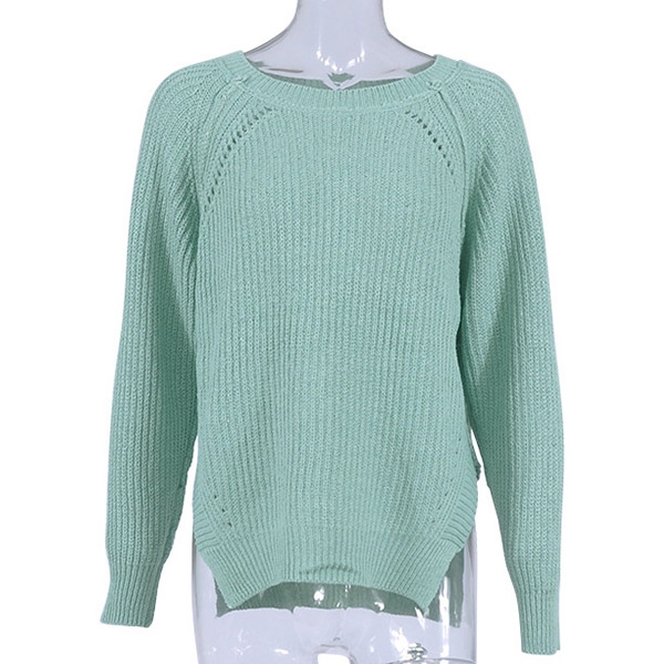 This sweater comes with a solid color,finished with long sleeve,round neck,slit hem and a loose silhouette,