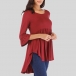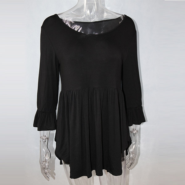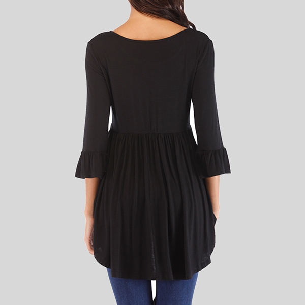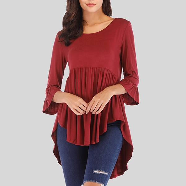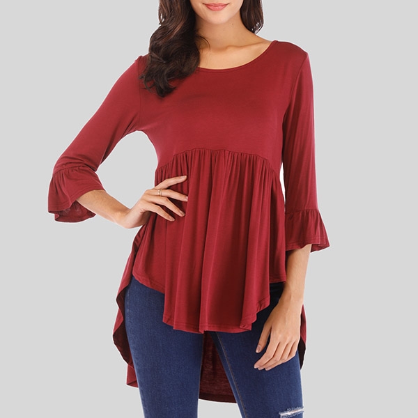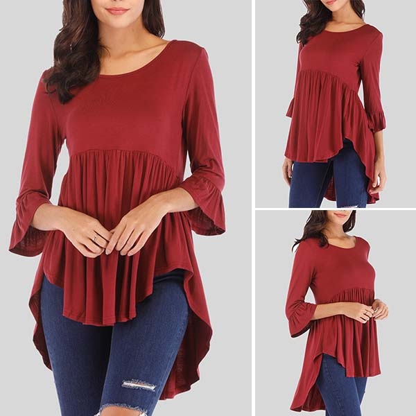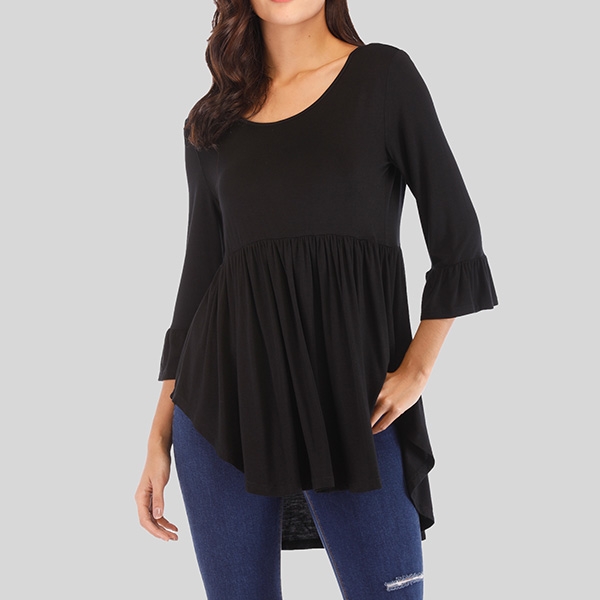 Enjoy the cozy and style which is offered by this t-shirt. It is designed with solid color,3/4 sleeve,round neck and a high-low hem design,