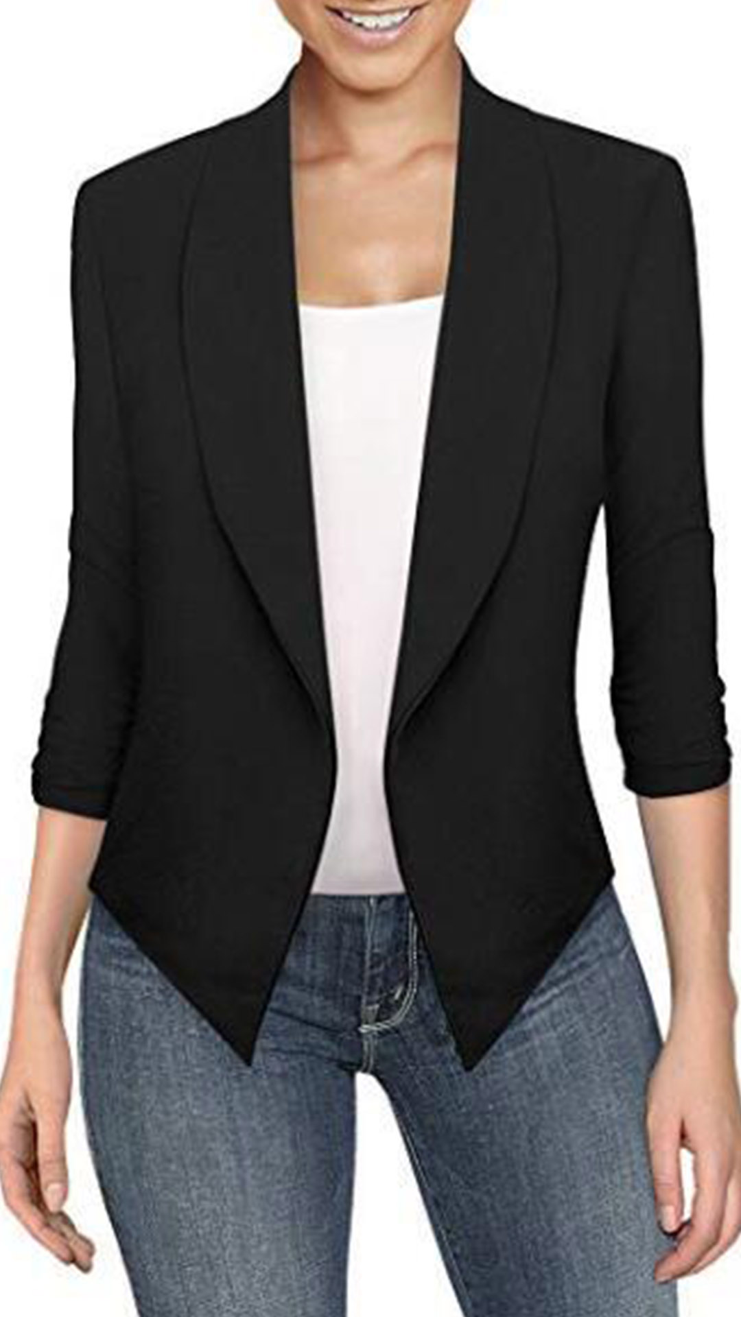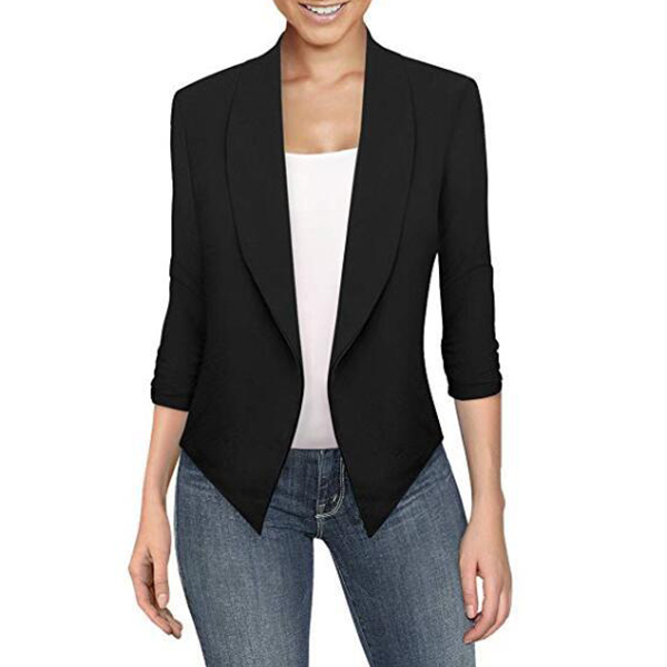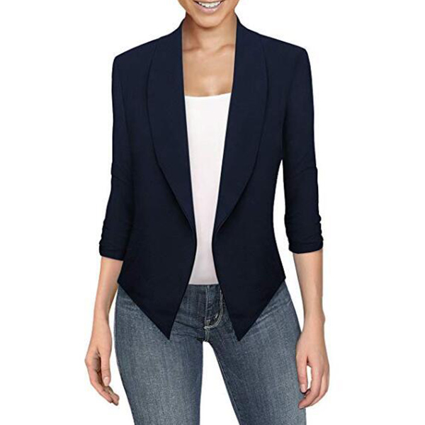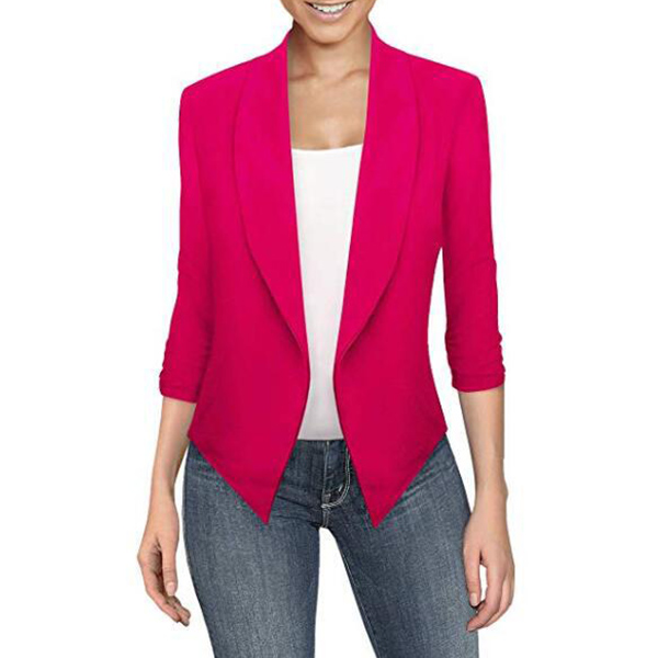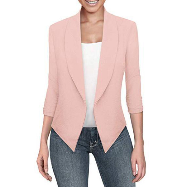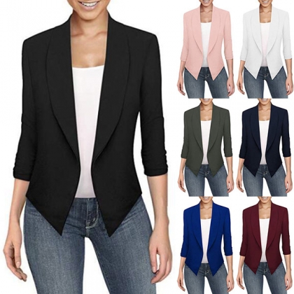 Comes with a solid color,finished with 3/4 sleeve,lapel and a clean silhouette,delicate yet elegant.