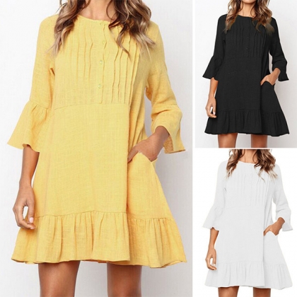 For your weekend strolling,this relaxed dress can be a good choice. Solid color style,finished with 3/4 sleeve,