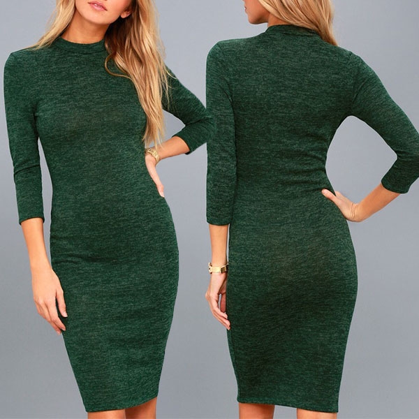 finished with 3/4 sleeve,round neck and a fit silhouette,this dress knows how to showcase your slender figure.