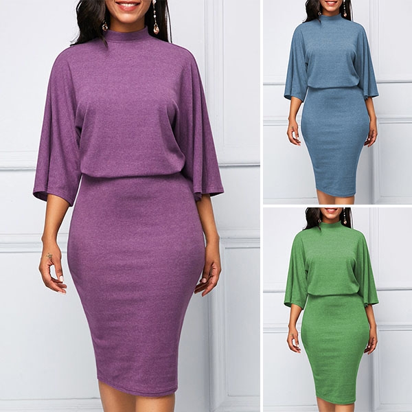 finished with 3/4 sleeve,round neck and a clean silhouette,this dress knows how to portray your elegant and