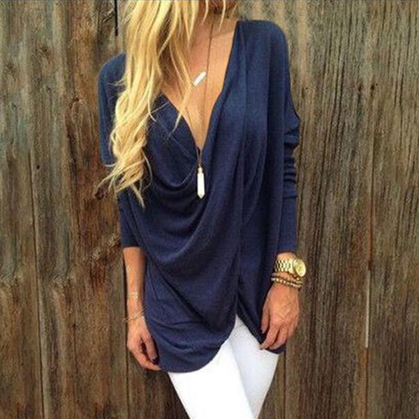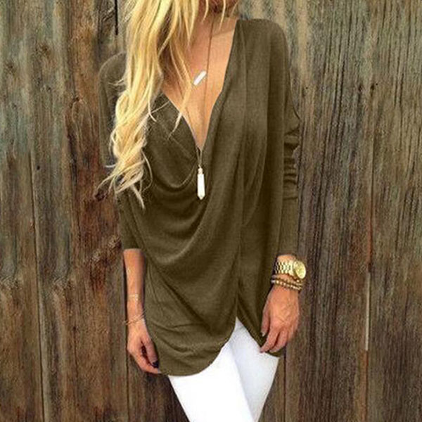 This top comes with a solid color,finished with 3/4 sleeve,v-neck and an irregular hem,chic yet stylish.