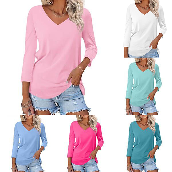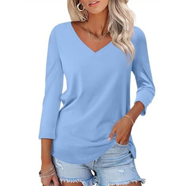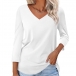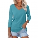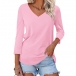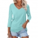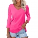 Enfärgad 3/4-ärm v-ringad t-shirt för dam