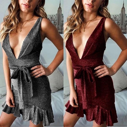 Solid color style,the deep v-neck and sleeveless design will offer you a charming look.