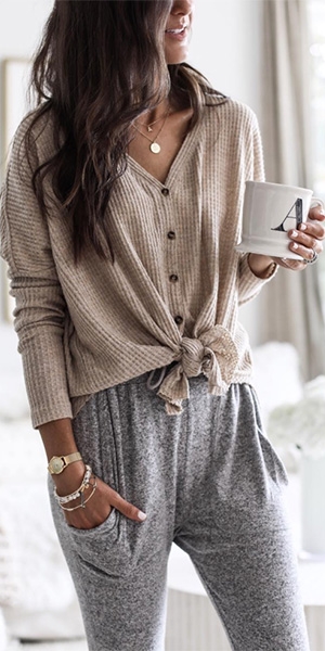 hemline can tie one knot and give you a charming look.Match one casual pants, you would have a relaxing and comfortable day.