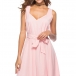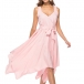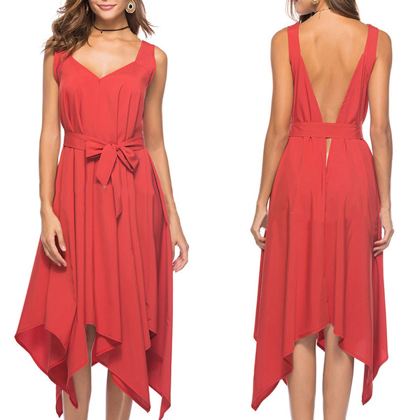 quality material,with deep v-neck,sleeveless and pleated hem.One exquisite bowknot waistband ties your waist,