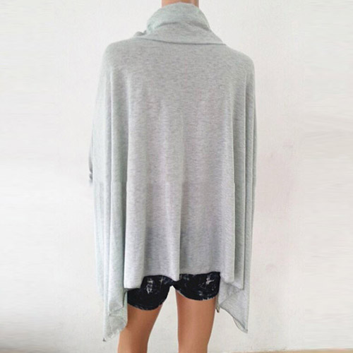 Fashion Solid Color Dolman Sleeve Cowl Neck Irregular Hem Loose Tops