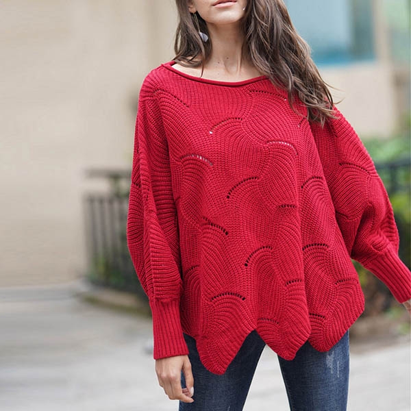 in this sweater. It comes with a solid color,the dolman sleeve and irregular hem design make this piece