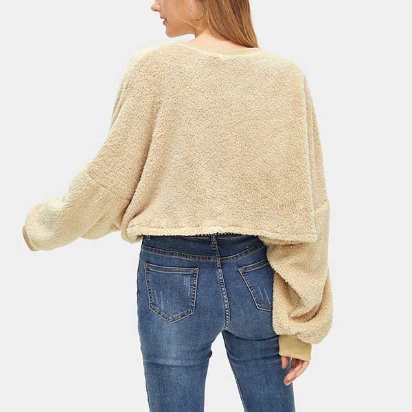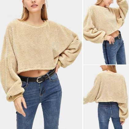When you feel a little cold,this plush crop top would strike your mind. Boasts a solid color,finished with