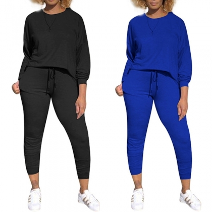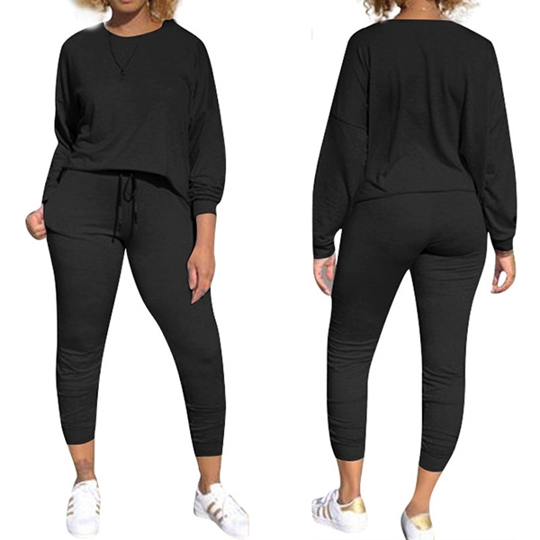 When you wanna a casual,relaxed and stylish weekend look,you can count on this two-piece set. Solid color style,
