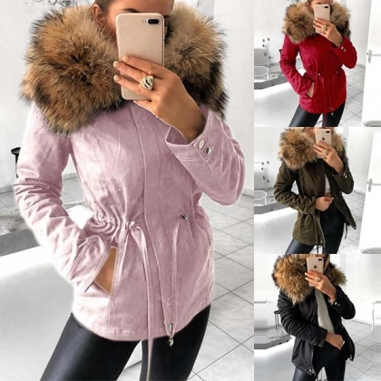 When the chilly winter hits,this coat is worth to arouse your attention. The faux fur spliced hooded silhouette design not only can keep you warm,but also can boost its entire charm. And the drawstring waist design will showcase your slender figure. Your perfect partner in these cold days.