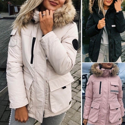 When the chilly winter hits,you can slip into this padded coat to stay warm. It is styled with a solid color,