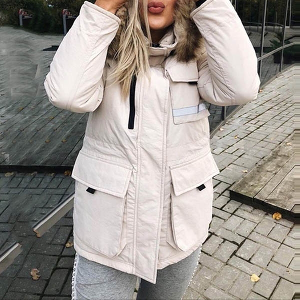 the faux fur spliced design will enrich the design style,and the multi pockets design will enhance its practicability.
