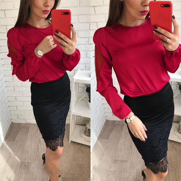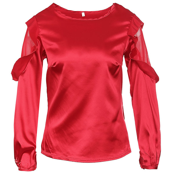 Comes with a solid color,the gauze spliced design at sleeve part enriches the design style as well