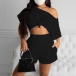 Om du oroar dig för hur du ska matcha dina kläder kan du prova det här tvådelade setet, enkelt och stilrent. Setet kommer i enfärgad stil och innehåller en halvärmad tröja med rund halsringning samt ett par shorts. Det här tvådelade setet hjälper dig att hålla dig sval under varma dagar. Det förtjänar verkligen en plats i din garderob.