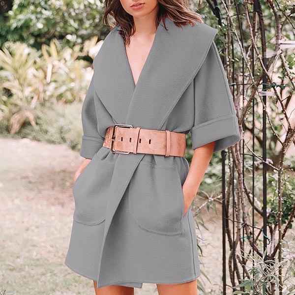 Finished with solid color,long sleeve and lapel design,this woolen coat is worth for your investment.