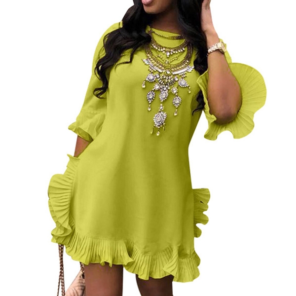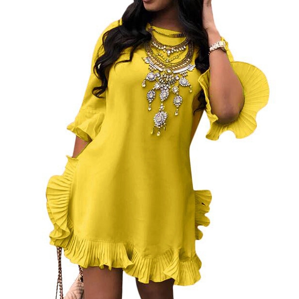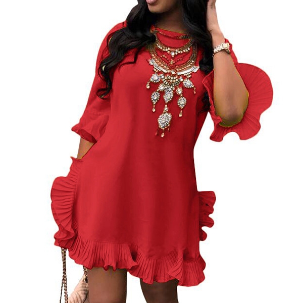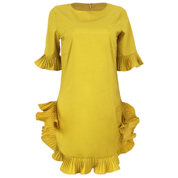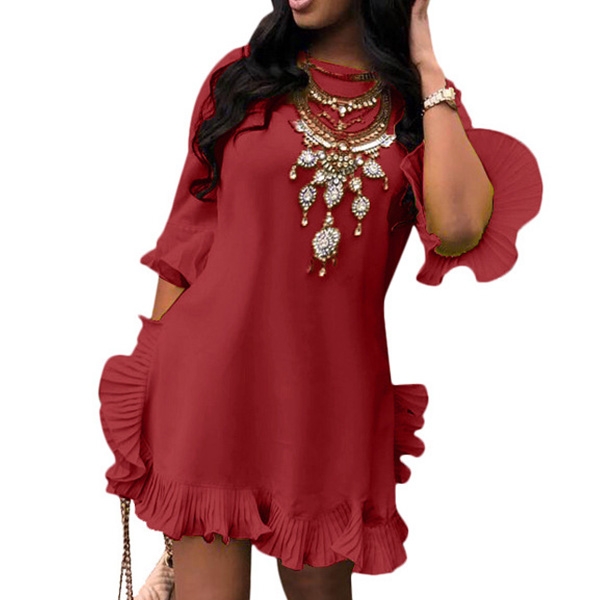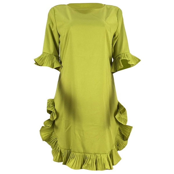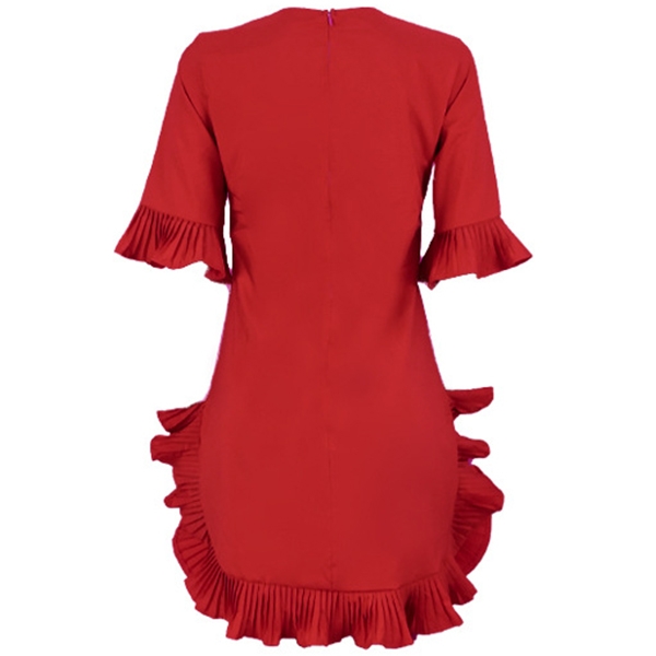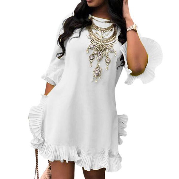 and round neck design,the ruffle hem design can enhance its charm. Of course you can add a sparkle necklace