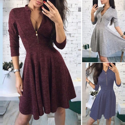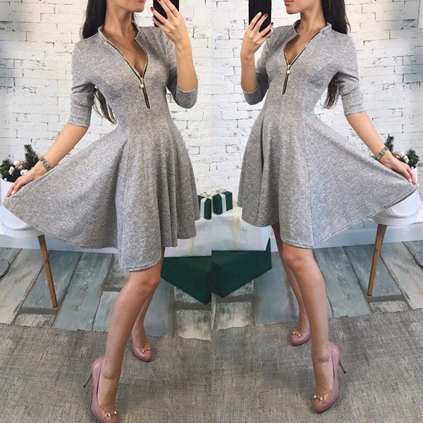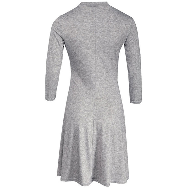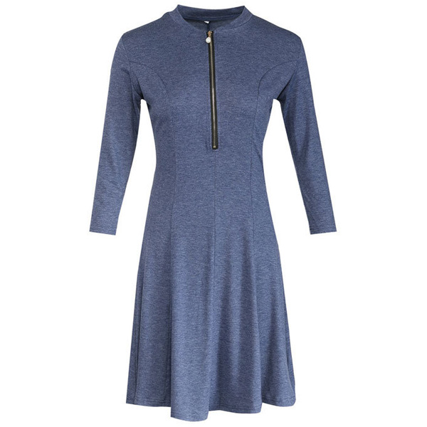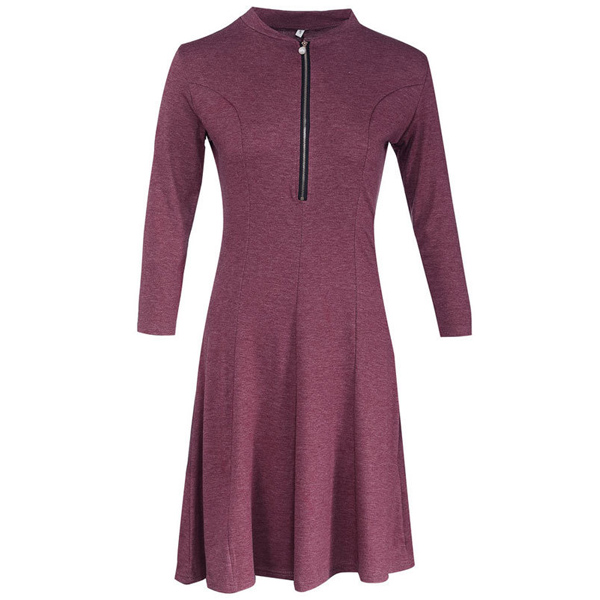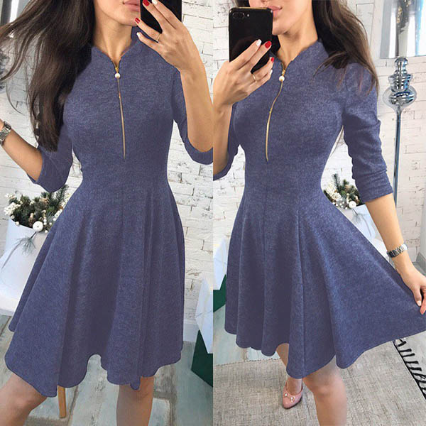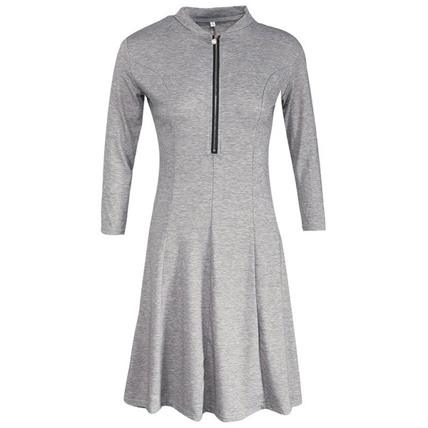 solid color,half sleeve,stand collar and a clean silhouette,this dress can give you a cozy yet stylish style.