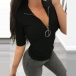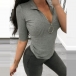 Fashion Solid Color Half Sleeve Ziper V-neck Slim Fit T-shirt
