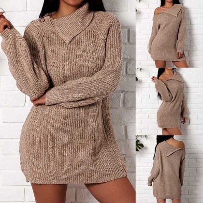long sleeve and slim fit.Oblique zipper that can help you shape different look,high-neck dress,