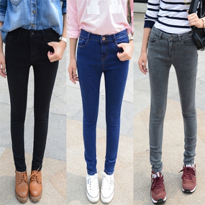 This jeans features solid color style,with high waist and slim fit deisgn,is a perfect way to show off