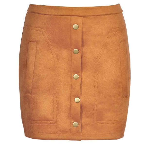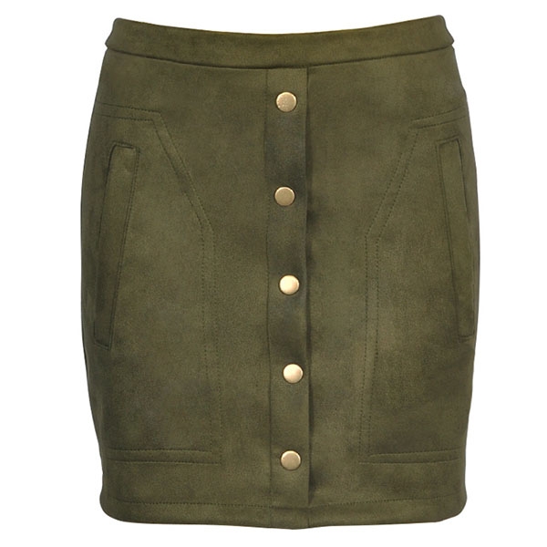 Den höga midjan och den passformade siluettdesignen kan visa upp dina smala ben, medan designen med de främre knapparna