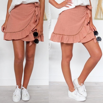 Finish a sweet and charming daily look with the help of this skirt. It boasts a solid color,the irregular ruffle