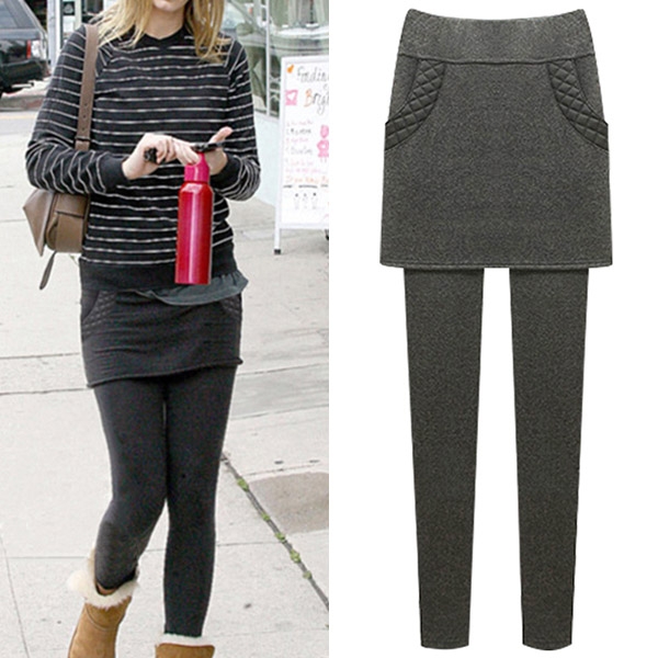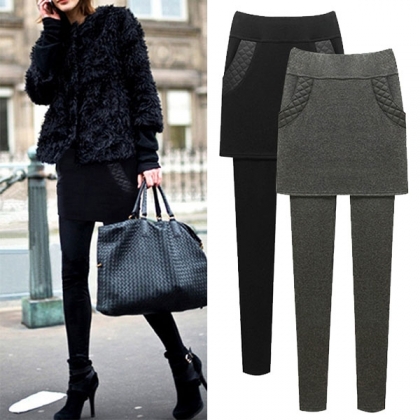 För dessa kyliga dagar kan dessa leggings erbjuda dig en varm och bekväm dag. Mock tvådelad